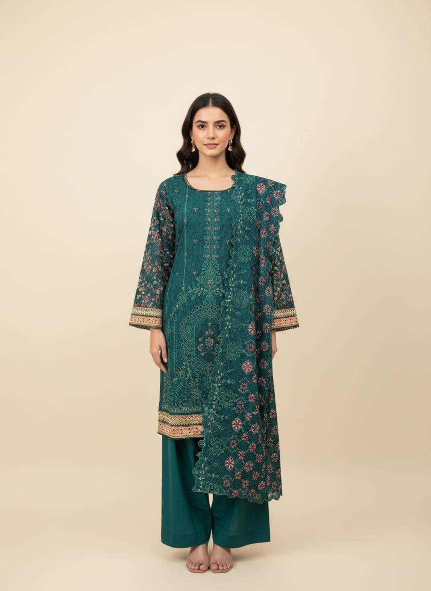 Elevate your seasonal wardrobe with our meticulously crafted 3-piece lawn ensemble. Combining the breezy comfort of high-quality lawn fabric with the intricate beauty of traditional embroidery, this outfit is a masterpiece of modern ethnic wear.
